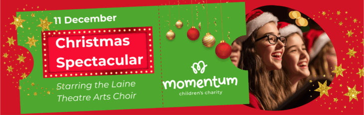 Get ready for a dazzling evening of festive magic as the Laine Theatre Arts Choir takes to the stage for Momentum’s Christmas Spectacular, conducted by the brilliant Lawrence Broomfield and compered by our Ambassador, actress and singer Kim Ismay.